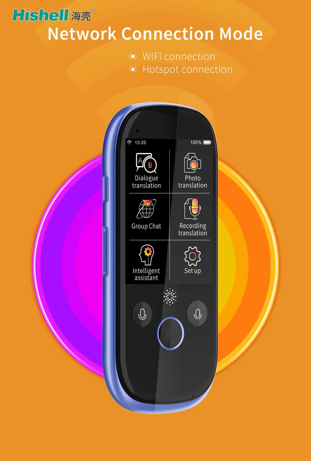 2.[Connect to WiFi or Hot-spot from mobile phone] Wherever you can access the internet by wifi or Hot-Spot from your mobile phone, no need to connect through an APP on your mobile phone.This functionality means that once connected you can immediately begin real-time translation.